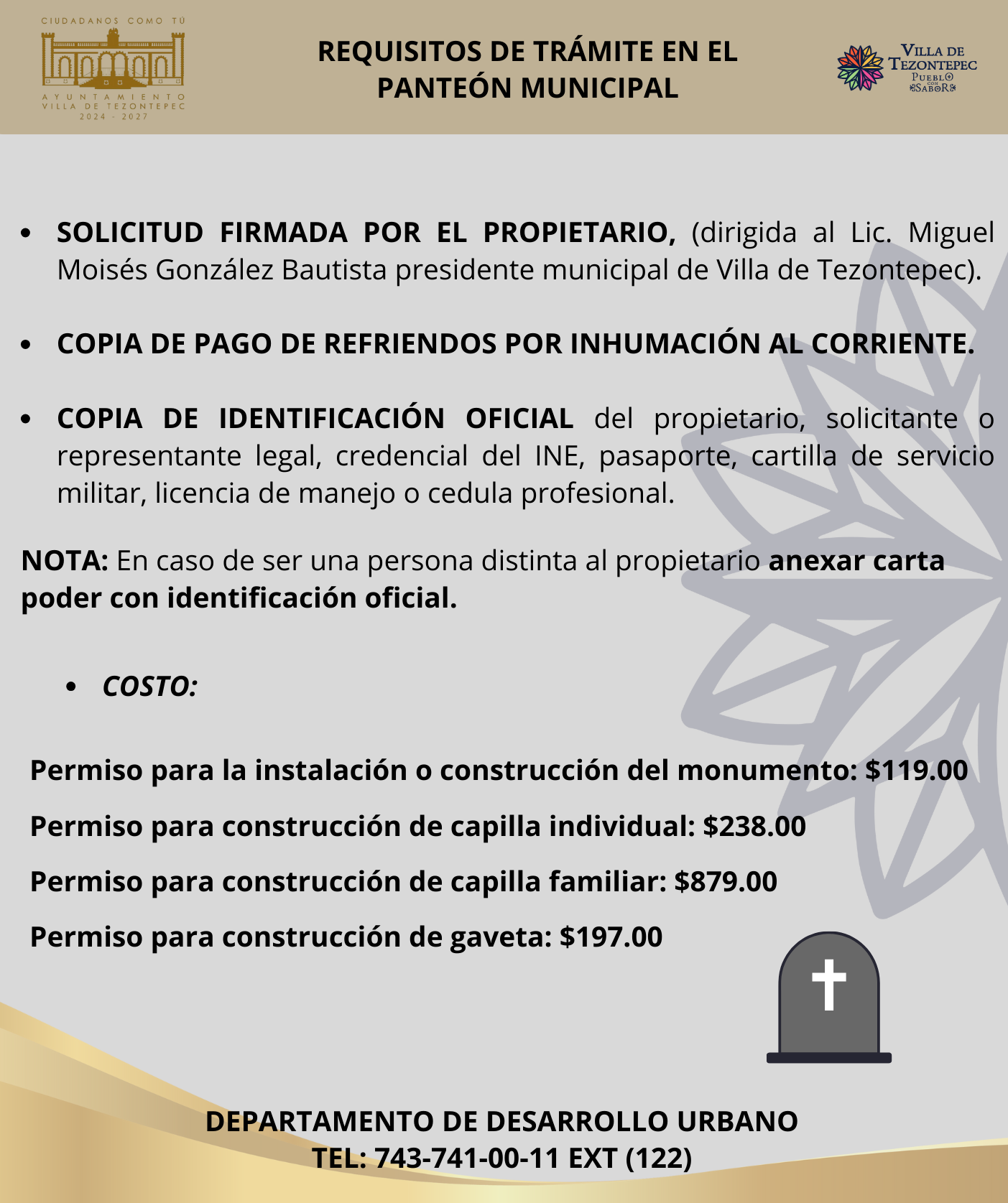 REQUISITOS DE TRÁMITE EN EL PANTEÓN MUNICIPAL